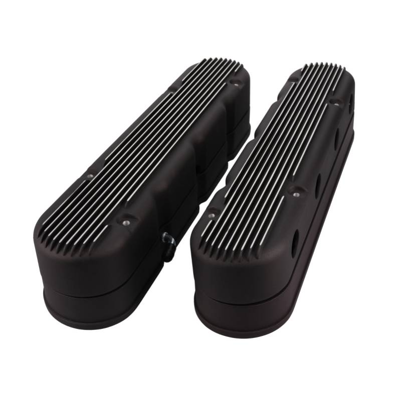 Valve Covers Let's face it, nobody wants an ugly set of ignition coils sitting atop their newly dressed up engine. You can take the time and effort to relocate them or you get a set of TSP's two-piece valve covers. The base has a tall internal height to allow for added valvetrain clearance and features provisions for mounting two of the most popular LS coil packs - no brackets required. It also features a baffled stock-style ventilation set-up. The coil cover features cut-outs for routing the wiring harness and spark plug wires and comes with a classic, finned top. Mounting Style: Center Bolt Internal Height: 1.60" Overall Height: 4.25" Baffled: Yes