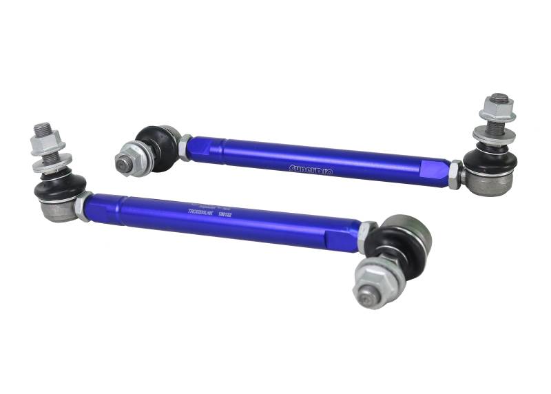 TRC12200 features an adjustable length of 254mm-305mm (10.0" - 12.0") and 12mm ball joint studs Length is measured from the center of one ball joint stud to the center of the other. Designed to maximize the benefit of Roll Control Adjustable Sway Bars and be used in place of that hard to find O.E link. Features & Benefits 6060-T5 Alloy Link Ball for low friction and long life Spanner provision for on-car adjustment Eliminates sway bar link flex Allows for neutral sway bar positioning Maximizes all positions on adjustable Sway Bars Suits lowered or raised vehicles SuperPro Tip - To get the best out of these adjustable link kits, please read the fitting instructions prior to installation. SuperPro Note-We catalog our adjustable end link fitment against the OEM end link sizing. Changes in the ride height of your vehicle may mean a shorter or longer link is required. Also, some aftermarket coil overs systems will relocate the mounting end link mounting tab requiring an end link shorter or longer than stock. If you have any questions please contact our tech support team for assistance in taking measurements to select the correct link set for your application.