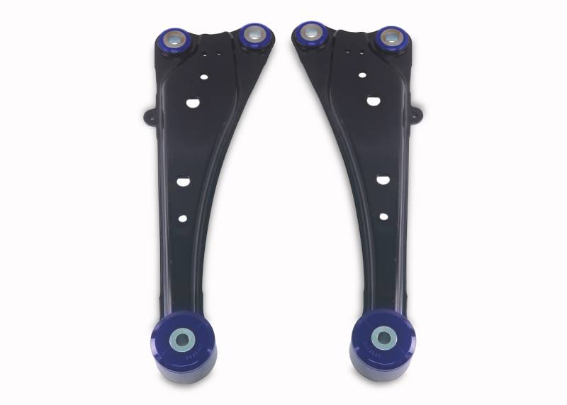 SuperPro's fitter friendly complete rear trailing arms offer not only a significant performance and durability upgrade - they also offer an easy DIY or professional install. No pressing in new bushings - these arms arrive fully assembled with pre-installed SuperPro bushings and new ball joints. The large pivot bushing in these trailing (also called blade control arms) arms are large, soft and heavily voided from the factory. Because they are worked hard they can also wear quickly and replacing the bushing alone is time consuming. SuperPro offers complete arms with pre-installed bushings as not only a complete upgrade but also a quicker and easier installation. We've worked hard to make these a huge bang-for-the-buck upgrade with fully upgraded and outfitted arms offering a front end refresh for your ride!