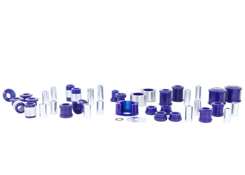 This kit has all the essential bushes needed to effectively increase the handling performance of this vehicle. Ideally suited as an entry level kit for a standard vehicle or vehicle with limited modifications. Kit contains: Front Control Arm Lower-Inner Front Bush Kit Front Control Arm Lower-Inner Rear Bush Kit (Bush only) Front Torque Arm Lower Insert Bush Kit Rear Control Arm Upper-Inner Bush Kit Rear Control Arm Upper-Outer Bush Kit Rear Control Arm Lower-Rear Inner Bush Kit Rear Control Arm Lower-Rear Outer Bush Kit Rear Control Arm Lower-Inner Front Bush Kit Rear Control Arm Lower-Front Outer Bush Kit Rear Trailing Arm Front Bush Kit