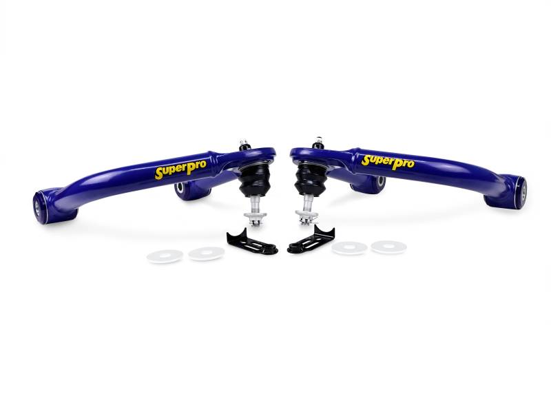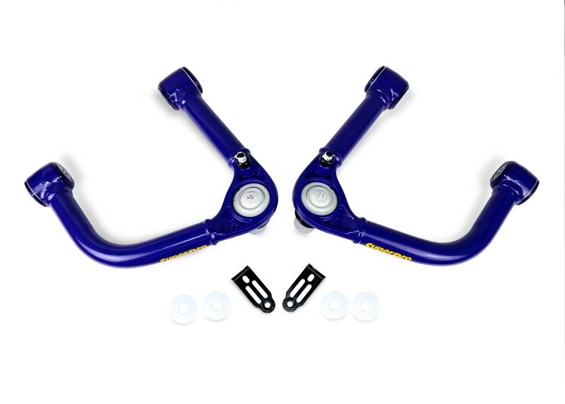 Fixed Offset Arms fitted with Uprated Ball Joints and SuperPro Bushes to reduce Arm movement SuperPro's fixed offset UCA set brings front end alignment and suspension geometry back into an ideal spec for Tundra's and Sequoias lifted 2" to 4" over stock. Measured at a 3" lift from stock the SuperPro TRC6740 kit delivers -1.0 camber and +2.0 caster when paired with the OEM lower control arm. Utilizing maintenance free SuperPro bushings and a uprated high-articulation ball joint the SuperPro UCAs are built to perform and offer superior durability on your favorite trail and superior road manners and on-road handling on the road trip to get there or on your daily commute. Designed and developed in Australia incorporating nearly 5 decades of SuperPro's industry-leading suspension expertise.