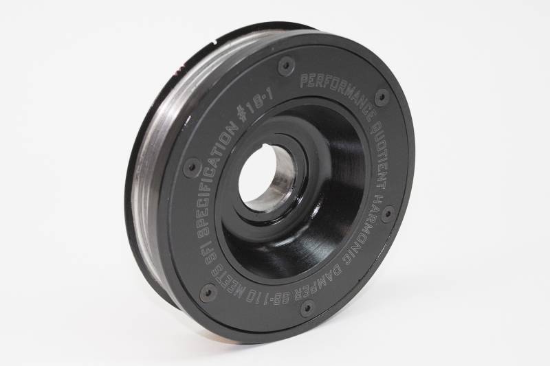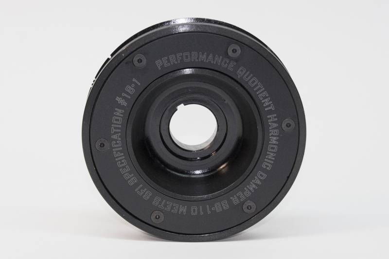 PQx SFI-Rated Racing Steel Damper PRW SFI Certified steel dampers are perfect for the weekend warrior or the all out racer. These dampers can be used for the street Meets SFI 18.1 Specification Easy To Read Laser Engraved Timing Marks Accurate Crank Bore I.D. For Proper Pressed Fit Manufactured From Billet Carbon Steel Forgings Injected With Elastomer Between Inner Hub And Outer Ring