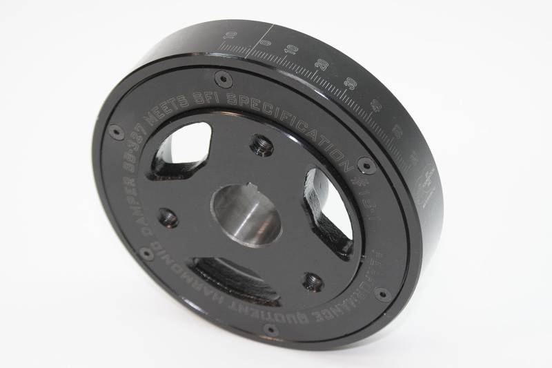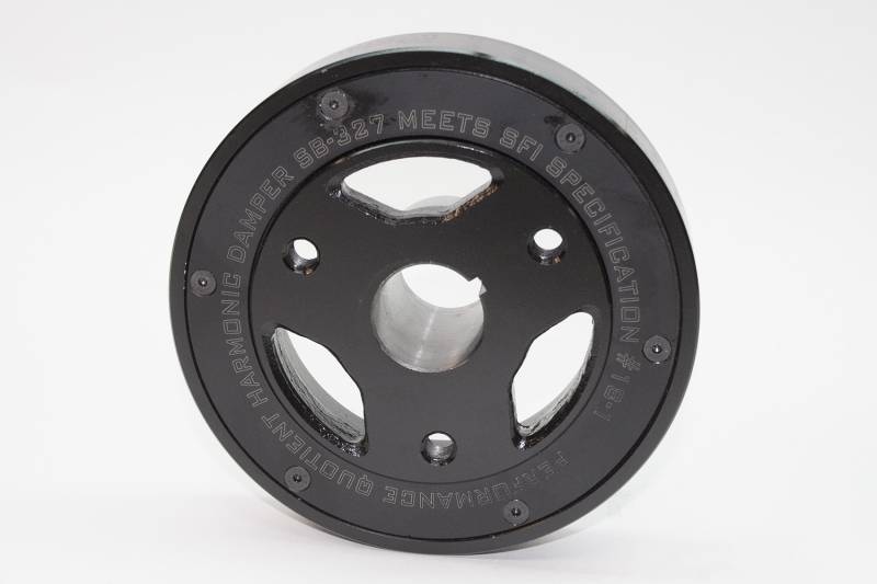 PQx SFI-Rated Racing Steel Damper PRW SFI Certified steel dampers are perfect for the weekend warrior or the all out racer. These dampers can be used for the street Meets SFI 18.1 Specification Easy To Read Laser Engraved Timing Marks Accurate Crank Bore I.D. For Proper Pressed Fit Manufactured From Billet Carbon Steel Forgings Injected With Elastomer Between Inner Hub And Outer Ring