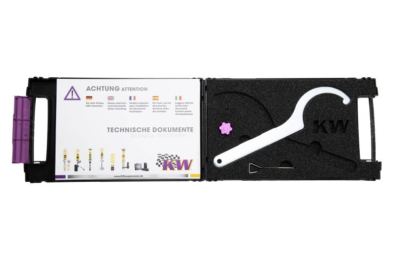The KW V1 INOX-LINE coilover kit is our entry point into our street performance lineup. The high-quality INOX-LINE stainless steel coilover struts, corrosion resistant springs, bumps stops and dampers that are optimally tuned by our engineers the result is a balanced and sporty feel specific to each vehicle application designed for long lasting driving pleasure. With KW V1 coilovers you can achieve maximum lowering within an approved lowering range that ensures a proper functioning suspension and adequate travel after your car is lowered. Even after years of use you can easily adjust the ride height thanks to the dirt resistant trapezoid thread and composite adjustment collar. KW INOX-LINE coilover rewards the sporty driver with its harmonious pre-configured setup. For each vehicle our engineers develop a specific damper setup and spring rate to increase the driving pleasure with an optimal balance of sportiness and practicality. As with all KW coilovers, the engineers at KW develop the vehicle-specific KW damper tuning and spring rates with comprehensive testing on the Nurburgring Nordschleife and in the KW 7-post chassis dynamics test center. Unlike a mass produced, generic coilover kit, KW coilovers are developed specifically for your vehicle. As a manufacturer, KW uses only its own resources, high quality components and the damper technology that was all developed in-house. With the KW V1 coilovers, body roll will be reduced during compression giving you the benefit of a more genuine and direct sporty handling while driving.