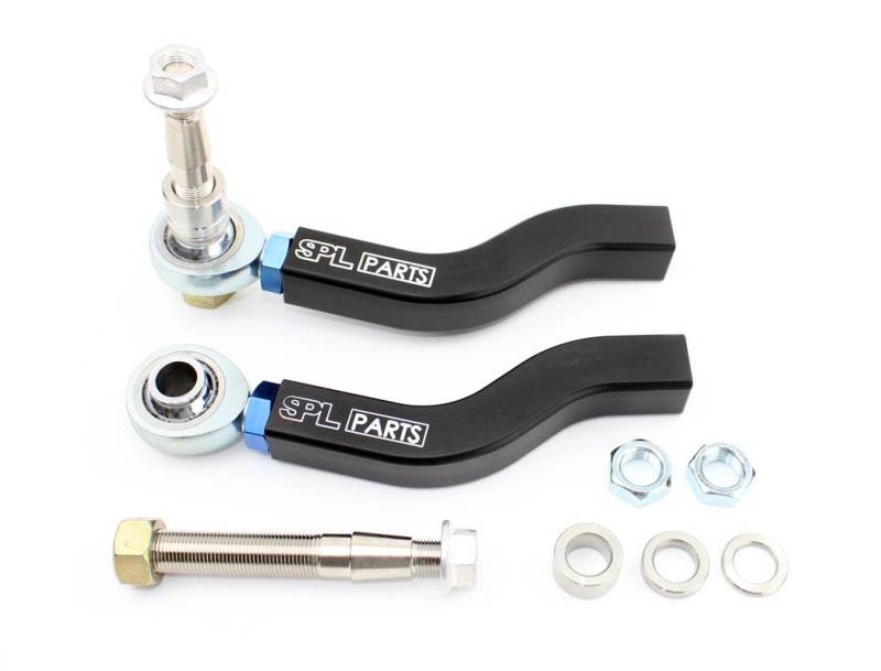 SPL Parts Titanium Series Front Outer Tie Rod Ends (TRE) allow for bumpsteer adjustment by enabling the tie rod end pivot to be relocated with the use of spacers. Reduced bumpsteer results in smoother steering and quicker lap times. On cars that are lowered significantly, relocating the pivot point will also keep the tie rod end from binding, thereby preventing the inner tie rods from breaking or bending when racing. High Misalignment Rod Ends from FK are utlized to further ensure full articulation and a crisp steering response. Machined to match the curvature of the OEM outer tie rod ends, our kit will ensure fitment with wide wheels and tires. Made in the USA. Sold as a pair. SPL Parts Front Tie Rod Ends Features: FK Teflon lined High Misalignment Rod Ends provide maximum articulation Electroless Nickel plated hardened 4140 Chromoly tapered studs for precise fitment in the knuckle 1/2", 1/4" and 1/8" Stainless Steel spacers to fine tune bumpsteer Black Anodized 6061 Aluminum Turnbuckle with SPL logo Blue Anodized Titanium jam nuts Distorted thread locking hardware Application:-2009+ Nissan GT-R (R35)-09+ 370Z (Z34)-07-08 G35 Sedan, 08+ G37-2014+ Q50, 2016+ Q60 Need a replacement rod end?: SPL TRE rod ends Installation Instructions: SPL Front Outer Tie Rod Ends