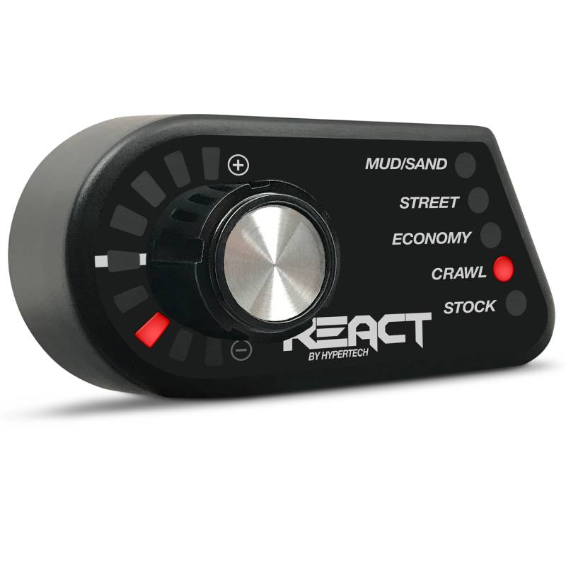 REACT 4X4-GM C The REACT offers fully customizable control over your vehicle?s throttle response. The simple control knob allows you to switch between multiple modes and control the throttle intensity of each mode on-the-fly. The REACT installs easily and is completely plug-and-play, has an automatic setup sequence so no disassembly is required, comes with a magnetic A/C vent mount (Pedestal swivel mount also available - Sold separately), and doesn?t void your factory warranty. Plus the REACT is internet updateable. Three (3) versions of the REACT throttle optimizer are available to fit your particular driving needs...Performance, Off-Road, and Tow.