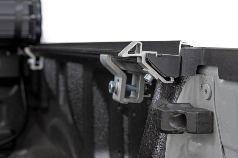 Your truck bed is built for hauling, but without a cover, your cargo is left vulnerable to the elements and unwanted attention. Rough Country's Hard Roll-Up Bed Cover delivers the perfect balance of security, durability, and style, keeping your gear safe, dry, and out of sight while transforming your truck with a sleek, modern look.Sleek Flush, Low-Profile Design: Finished in a stylish matte black with durable aluminum slats, this cover adds a clean, streamlined appearance that complements any truck.Convenient Roll-Up Access: Designed for everyday versatility, the roll-up design allows full bed access in seconds. A single cable pull quickly releases the latch, while the auto-latching closure locks everything back down securely, hassle-free.Built Strong, Built to Last: Supporting up to 600lbs of evenly distributed weight, this heavy-duty cover stands up to tough jobs. Its black powder-coated aluminum frame resists corrosion and harsh weather, ensuring long-lasting durability you can rely on.Smart, Secure Mounting System: A dependable track and rail system with included drain tubes channels water away efficiently, helping keep your cargo dry while ensuring a snug, weather-resistant fit.Safety and Peace of Mind: Nylon safety straps with quick-release clips keep the cover secure when rolled, while a dependable 5-year warranty backs your investment for years of worry-free use.No-Drill, Hassle-Free Install: With all tools included, installation and removal are simple and straightforward, no drilling required.Upgrade your truck with a bed cover that works as hard as you do. Strong, stylish, and built for convenience, the Rough Country Hard Roll-Up Bed Cover is the ultimate way to protect your gear while keeping your truck looking sharp.