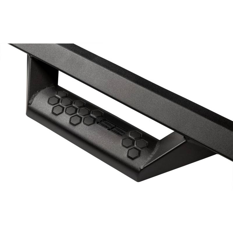 Smittybilt's Angular Drop Steps match the newest generation of vehicle styling. This design offers a clean look while protecting the side of the vehicle. Its wide step and unique hexagon design enhances the look of your vehicle while giving you a large safe platform to step in and out of your vehicle. Our light black textured finish provides durability and protection against all elements and provides . Quick and easy install. Smittybilt angular drop steps are backed by our industry leading lifetime structural and 5 year finish warranty. 445lb weight capacity Textured black finish Large 13" stepping area at every door, measuring 4" deep Sold as a pair Fits 2019-2024 Ram 1500 - Crew Cab