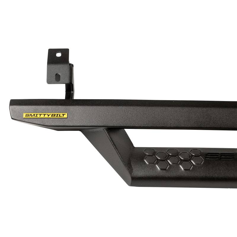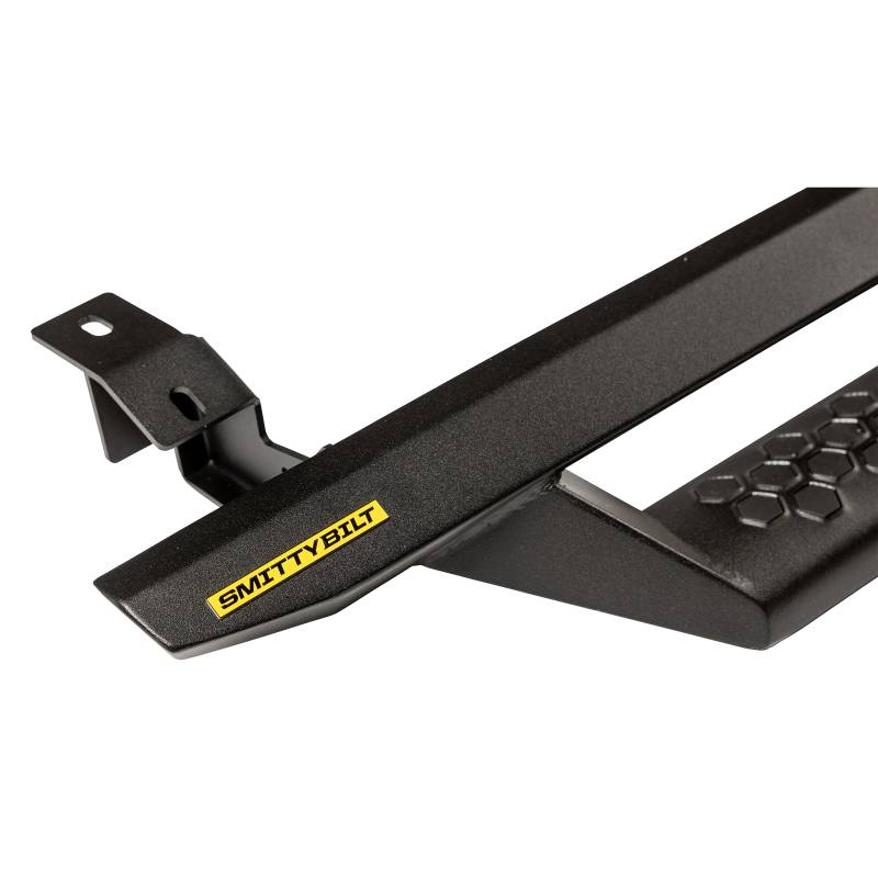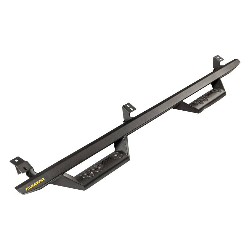 Smittybilt's Angular Drop Steps match the newest generation of vehicle styling. This design offers a clean look while protecting the side of the vehicle. Its wide step and unique hexagon design enhances the look of your vehicle while giving you a large safe platform to step in and out of your vehicle. Our light black textured finish provides durability and protection against all elements and provides . Quick and easy install. Smittybilt angular drop steps are backed by our industry leading lifetime structural and 5 year finish warranty. Textured black finish Cab length Sold as a pair Limited Lifetime Structural Warranty / 5 Year Finish Warranty Fits 2016-2023 Toyota Tacoma