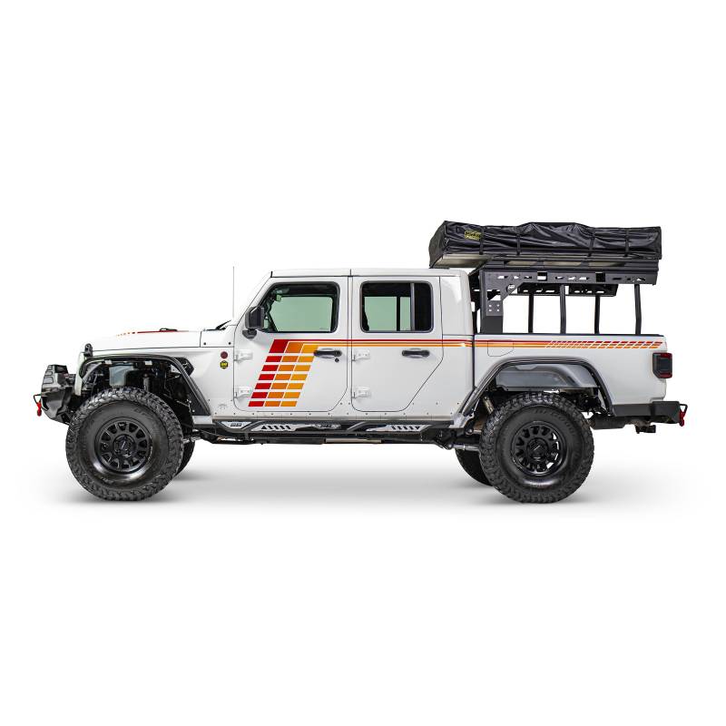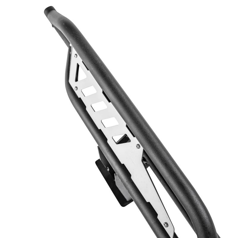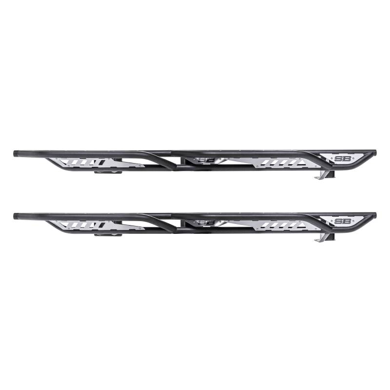 The Smittybilt Apollo Sliders with Step provide exceptional protection and style for your Jeep Wrangler JK/JKU/JL/JLU, Gladiator JT, 4Runner, and Ford Bronco (2 and 4-door models). Crafted from heavy-duty steel tubing, these sliders feature a sleek, modern design with removable sheet metal for easy customization. With wheel-to-wheel coverage and a dual girder system, they safeguard your vehicle's sides and undercarriage while offering a convenient step for easier access. Heavy-duty Steel tube side bar Sold as a pair Dual girder system protects sides and under section Fits 2020+ Jeep Gladiator JT Wheel-to-Wheel coverage for maximum protection