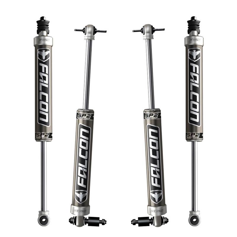 Falcon SP2 2.1 Monotube Shocks deliver increased stability, improved ride quality, and comfort for daily driven Jeeps in a compact and affordable package. SP2 2.1 Shocks have been optimized for on- and off-road driving. “High-Value Performance” is the driving force behind our vehicle-specific dampers for Jeeps, trucks, and SUVs. These Jeep-specific shock absorbers deliver increased stability, improved ride quality, and comfort for daily driven vehicles as well as race-inspired performance, handling, and stability for off-road rigs.