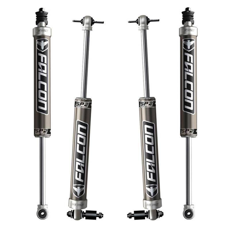 Falcon SP2 2.1 Monotube Shocks deliver increased stability, improved ride quality, and comfort for daily driven Jeeps in a compact and affordable package. SP2 2.1 Shocks have been optimized for on- and off-road driving. “High-Value Performance” is the driving force behind our vehicle-specific dampers for Jeeps, trucks, and SUVs. These Jeep-specific shock absorbers deliver increased stability, improved ride quality, and comfort for daily driven vehicles as well as race-inspired performance, handling, and stability for off-road rigs.