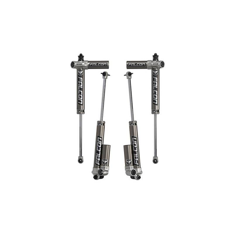 Falcon SP2 3.1 Piggyback Shocks deliver increased stability, improved ride quality, and comfort on road, while the increased compression damping provides more aggressive off-road handling. SP2 3.1 Shocks have been optimized for on- and off-road driving. “High-Value Performance” is the driving force behind our vehicle-specific dampers for Jeeps, trucks, and SUVs. These Jeep-specific shock absorbers deliver increased stability, improved ride quality, and comfort for daily driven vehicles as well as race-inspired performance, handling, and stability for off-road rigs.