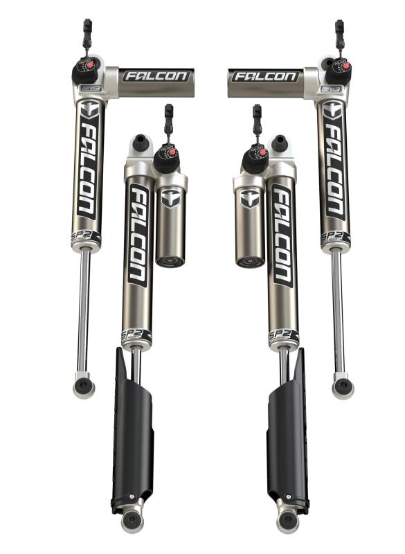 Adjust your suspension tuning on the fly with the Falcon SP2 3.5 e-Adjust Piggyback Shocks! In addition to the 8-Position Micro Adjust Dial, a 2-Position In-Cab Switch can be manually adjusted from Soft to a preselected Firm setting.