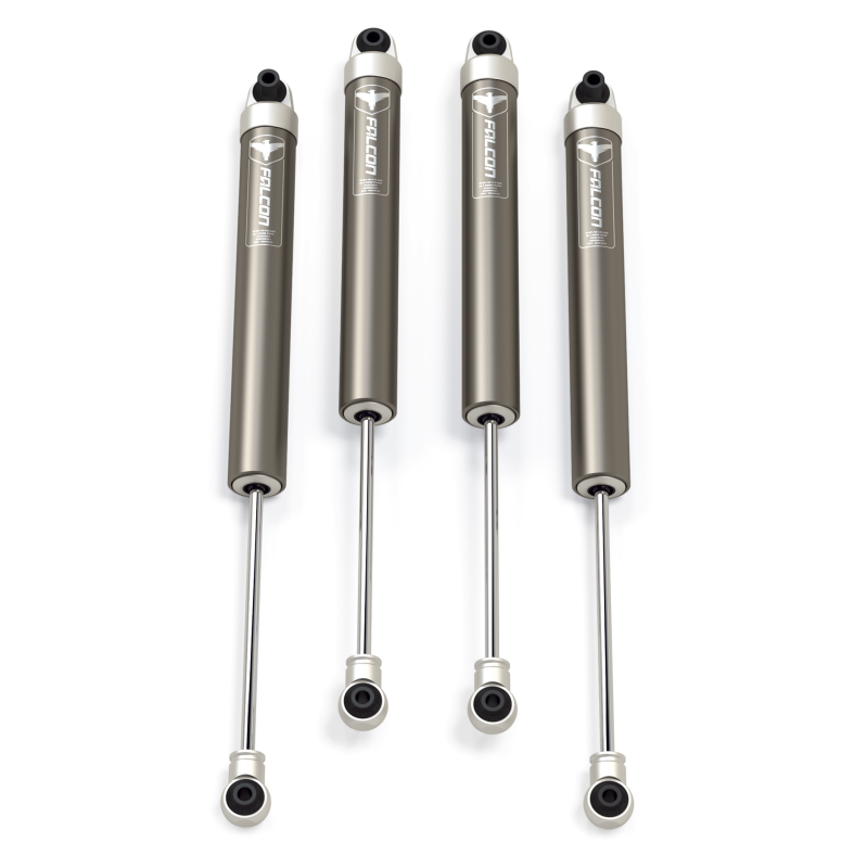 \n“High-Value Performance” is the driving force behind our vehicle-specific dampers for Jeeps, trucks, and SUVs. These Jeep-specific shock absorbers deliver increased stability, improved ride quality, and comfort for daily driven vehicles as well as race-inspired performance, handling, and stability for off-road rigs. Falcon Performance Shocks by TeraFlex.