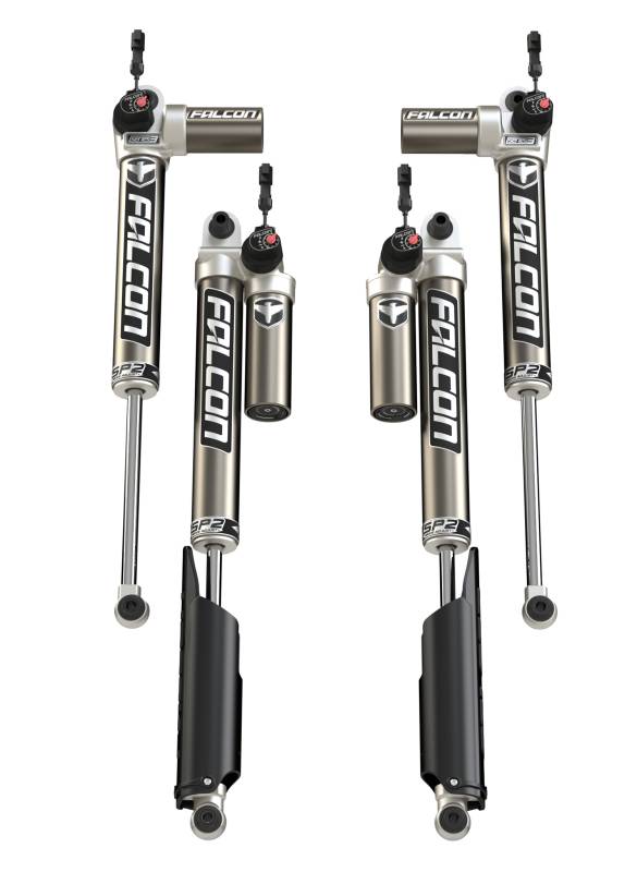 Adjust your suspension tuning on the fly with the Falcon SP2 3.5 e-Adjust Piggyback Shocks! In addition to the 8-Position Micro Adjust Dial, a 2-Position In-Cab Switch can be manually adjusted from Soft to a preselected Firm setting.