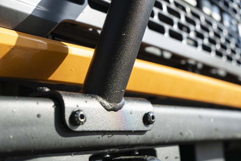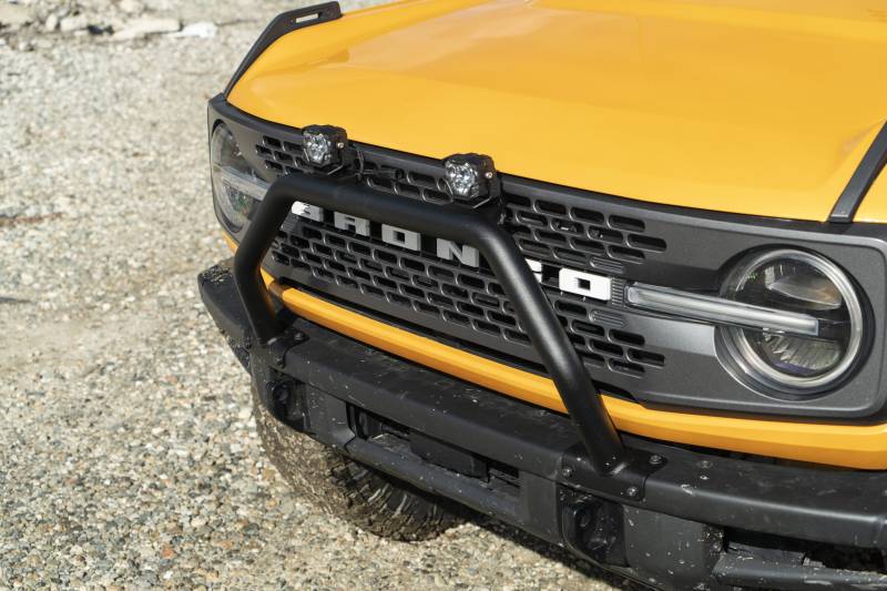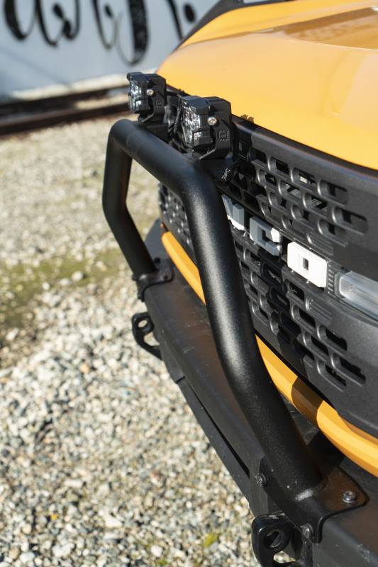The Smittybilt Ford Bronco OEM Overrider Bar enhances your vehicle's front end with a sleek, OEM-style bull bar. Crafted from durable 2" steel tubing, it seamlessly integrates with your Bronco's OE front camera and sensors. Backed by a 5-year finish warranty and a lifetime structural warranty, this overrider bar combines style, protection, and reliability.