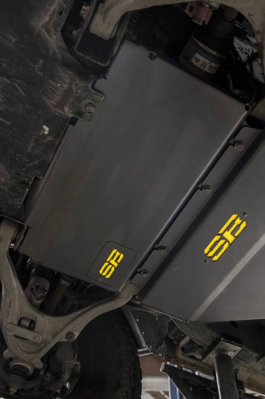 Smittybilt's skid plates for the 2021+ Ford Bronco offer exceptional under-body protection for your vehicle. Designed for the oil, transmission, and transfer case areas, these trail-ready skid plates are powder-coated for durability, giving you the confidence to tackle any obstacle on your off-road adventures. Light texture powdercoat Limited Lifetime Structural Warranty / 5 Year Finish Warranty Provides durable solid protection Increased protection Steel construction