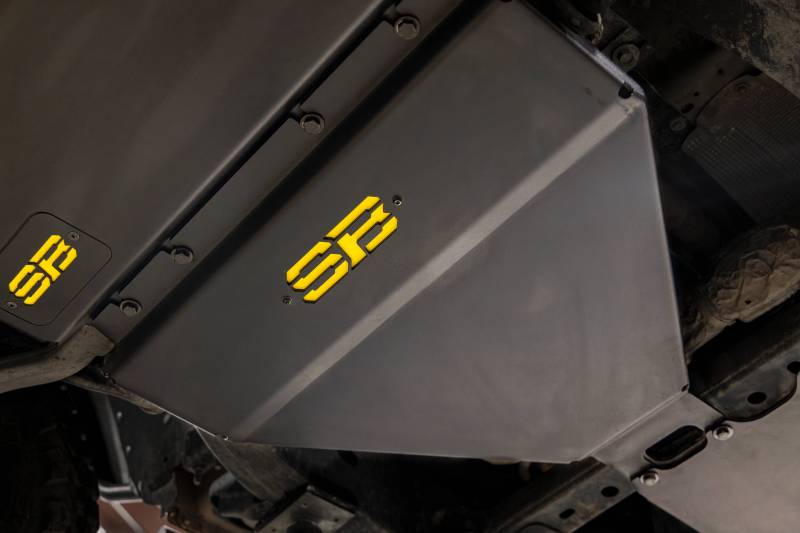 Smittybilt's skid plates for the 2021+ Ford Bronco offer exceptional under-body protection for your vehicle. Designed for the oil, transmission, and transfer case areas, these trail-ready skid plates are powder-coated for durability, giving you the confidence to tackle any obstacle on your off-road adventures.