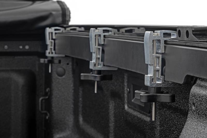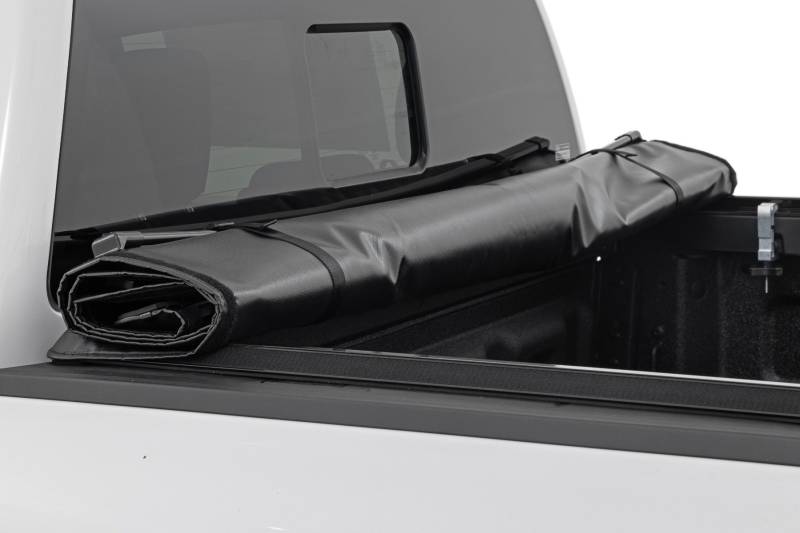 All-Weather Bed Protection: Rough Country's Soft Roll-Up Bed Cover delivers reliable protection against the elements while preserving full bed functionality. Constructed from high-quality, marine-grade vinyl with a sleek matte black finish, this durable cover features heavy-duty hook-and-loop side seals and tight front and rear barriers to shield your cargo from rain, dust, and debris.Streamlined Low-Profile Design: Sitting just 1-1/8" above the bed, this top-mount cover blends seamlessly with your truck's lines for a clean, stylish look. The corrosion-resistant, black powder-coated aluminum frame offers long-lasting strength without sacrificing style or aerodynamics.Fast and Easy Bed Access: The roll-up design and spring-latch closure system make opening and closing the cover a breeze. A single cable pull lets you release the latch quickly, giving you fast access to your full bed whenever you need it. Whether you're hauling gear or unloading tools, convenience comes standard. Effortless Installation: No drilling required - this cover installs in just 20 minutes using the included bracket system and tools. It mounts securely to your factory bed rails for a snug, hassle-free fit you can count on.Protected by a 5-Year Warranty: Rough Country backs this Soft Roll-Up Bed Cover with a 5-Year Replacement Warranty, protecting against structural and workmanship defects so you can hit the road with total confidence.