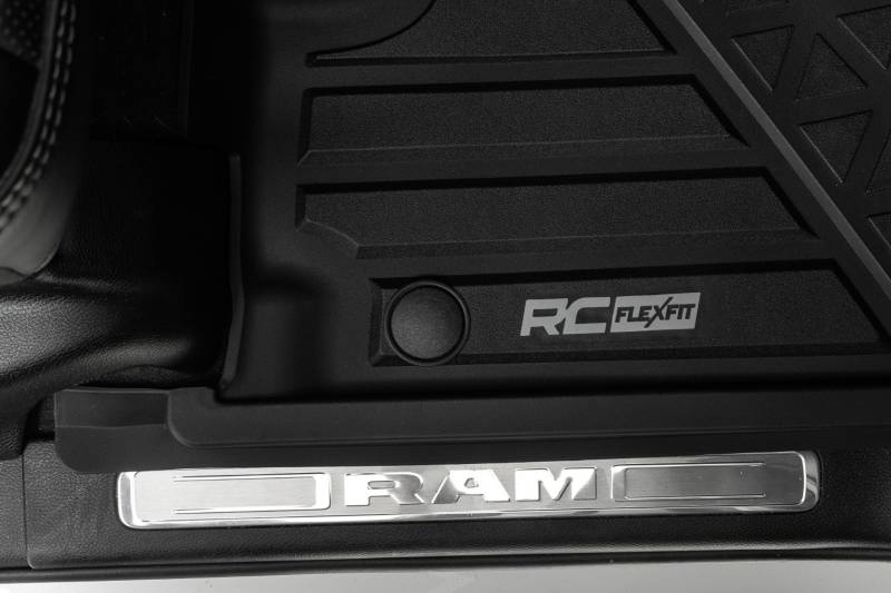 Introducing Flex-Fit floor mats ΓÇö the ultimate enhancement for your truck's interior and built tough to handle any challenge. Crafted from premium rubber-like material, these mats are as durable as they come, perfectly tailored to fit your truck's unique shape for a seamless finish.\ Stock floor mats just don't cut it for adventurers. They get trashed by mud, don't hold up to spills, and leave your carpets a mess. Give your ride the all-weather protection it deserves with Rough Country's Flex-Fit Floor Mats, the perfect solution for keeping your vehicle clean and protected.\ All-Weather Protection: Engineered to fit your vehicle perfectly, these mats provide top-notch defense against snow, mud, sand, saltwater, and more.\ Spill Saver Lip: Don't sweat the spills! Our mats feature a Spill Saver Lip that prevents liquids from reaching your carpet, so you can enjoy your coffee on the go without worry.\ Non-Slip, Textured Surface: Stay in control no matter the terrain with our mats' non-slip, textured surface, designed to keep your feet firmly planted while driving.\ Easy to Clean and Maintain: Cleaning up is a breeze! These mats are detachable and easy to clean, so you can spend less time on maintenance and more time hitting the road.\ Premium Materials: Constructed from a rubber-like TPE material, these mats are built to withstand extreme temperatures without cracking or warping. They will stay flexible and functional for the long haul.\ Effortless Installation: Forget wrestling with bulky mats. Flex-Fit Mats slide right into place for a quick and frustration-free installation.\ Upgrade your truck's defense against the elements with Rough Country's Flex-Fit Floor Mats. They'll keep your carpets looking fresh and give you peace of mind on every adventure.