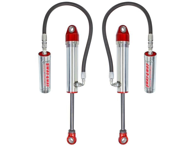 aFe Control introduces Sway-A-Way High Performance replacement rear shocks with remote reservoirs for the Y61 Nissan Patrol. These 2.5" diameter shocks feature all the same race winning engineering components that have 20+ years of testing into a specifically designed kit that will bolt directly into your daily driven vehicle. This kit offers remote reservoirs and better off road damping curves without sacrificing any on road comfort or handling. These rear shocks are 100% designed and built in the USA that feature bright zinc plated, clear coated steel cylinder bodies and CNC machined aluminum components. The kit works with vehicles with 0-2" of lift. Also included are reservoir brackets that mount directly to vehicle without any drilling or welding. This package is designed as a direct fit application. This aFe Control Suspension product is designed and engineered in our Corona, California facility.