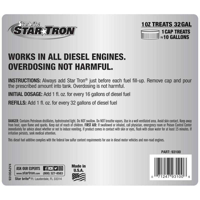 Discover the transformative power of Star Tron Super Concentrated Diesel Formula, a multi-functional fuel additive equipped with unique enzyme technology. Designed for all engines, it ensures easy starts and smooth running, even after prolonged idle periods. With its ability to break down excess water and sludge to sub-micron size, it facilitates their safe combustion during regular engine operation. Recognized as the "Best Choice" for guarding against fuel-tank corrosion, Star Tron not only enhances fuel economy but also cleans the entire fuel delivery system. It effectively removes gum and varnish deposits, leading to uniform combustion, maximum performance, and reduced emissions. Moreover, it offers fuel stabilization for up to two years and can rejuvenate old or sub-spec fuel. Safe for all engines, it's available in four concentrations for both gas and diesel, ensuring optimal performance and longevity.