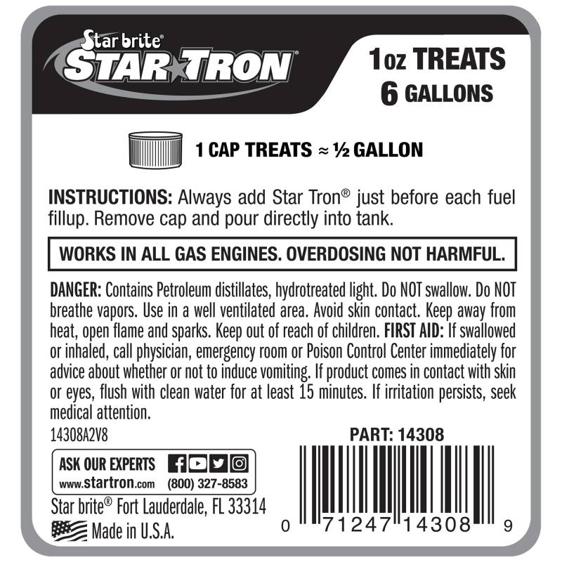Introducing Star Tron® Enzyme Fuel Treatment - the revolutionary fuel additive that will take your engine's performance to the next level! Whether you're using ethanol-blended fuel or ethanol-free gasoline, or if your engine has been sitting idle for months or used every day, Star Tron's unique enzyme technology ensures that your engine will start easily and run smoothly every time.\nStar Tron is a multifunctional additive that works in all engines and fuels and is more than just a fuel stabilizer for engine storage. Its powerful enzyme technology removes and prevents gum, carbon deposits, and varnish build-up, so you can be sure that your engine will always perform at its best year-round. Star Tron cures and prevents most ethanol problems, so you can enjoy your engine worry-free.\nStar Tron also helps prevent phase separation by dispersing water throughout the fuel as submicron-sized droplets that are safely eliminated while the engine operates. Poor combustion results in wasted fuel, smoke, and exhaust emissions. Star Tron not only improves performance and fuel economy but also reduces smoke and other emissions that are harmful to our health and our environment.\nStar Tron is ideal for all engines, including cars, trucks, boats (2-cycle & 4-cycle), motorcycles, ATVs, lawn mowers, generators, heavy equipment, snowmobiles, RVs, weed eaters, personal watercraft, and anything else that uses regular gas, ethanol blends, ethanol-free, rec fuel, rec-90, or pre-mix fuels. With Star Tron, you can be confident that your engine will run smoothly and efficiently, no matter the application.\nSo why wait? Get the best-selling, highest-rated ethanol fuel treatment + fuel stabilizer + gasoline stabilizer on the market today! Choose Star Tron Enzyme Fuel Treatment and experience the ultimate engine performance. ADD TO CART now and see the difference for yourself!\nUsing Star Tron Small Engine Formula #143 is easy! Simply add 1 fl. oz. (30 ml) for every 3 gallons (11 L) of gas as an initial dosage, and then add 1 fl. oz. (30 ml) for every 6 gallons (11 L) of gas as a refill. Unlike other stabilizers, Star Tron can be mixed with any other fuel additive without worry. There is no need to know the exact amount of fuel in the tank, or the need for expensive measuring bottles because Star Tron is fuel-based so overdosing is not harmful.