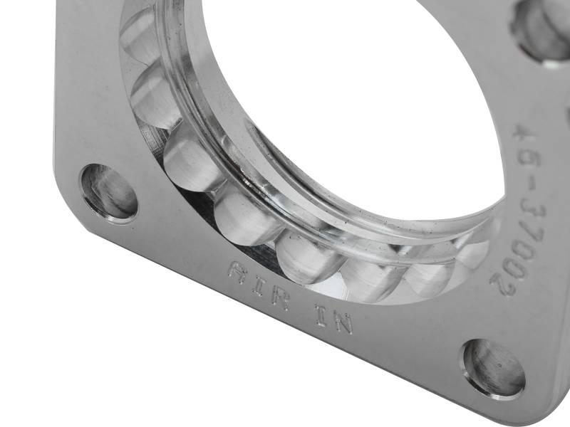 Silver Bullet throttle body spacers create turbulence in the air flow at the point just prior entry into the engine increasing horsepower, torque and improving throttle response and fuel efficiency. Silver Bullet throttle body spacers are constructed out of durable T-6061 billet aluminum and using a unique serrated/helix entry to create turbulence at the manifold while eliminating the annoying whistle found in other helix only throttle spacers.