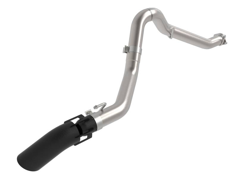 This DPF-back exhaust system is constructed of 3 IN mandrel-bent 304 stainless steel tubing for maximum strength and durability. This exhaust system is finished off with a 4 IN hi-tuck tip that is developed to give you extra clearance during extreme angle climbs or descents, protecting the exhaust over rough terrain. It features a high temperature black powder-coated finish and patent pending intercooled design, that reduces exhaust gas temperatures. Utilizing a factory style flange and hangers this system is a direct bolt-on system, which requires no cutting or modifications for a hassle-free installation. This DPF-back exhaust system is finished off with a hi-tuck tip that is developed to give you extra clearance during extreme angle climbs or descents protecting exhaust over rough terrain. Utilizing state-of-the-art computer-aided design technology, this exhaust system is designed for custom, high tolerance factory fitment. MIG-Welded for race-proven strength and durability.
