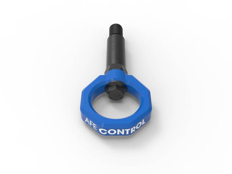 Add aggressive styling, and useful functionality to your BMW with aFe Control’s front tow hook. It’s sleek design not only looks great but is strong enough to safely winch your car onto a tow truck or get towed trackside if the need arises. Our BMW specific CNC machined stem and loop is made of 4130 steel. The stem is black zinc coated for corrosion resistance. The loop is powder coated Blue (Red, Black, and Gray are available). This is not a universal tow hook. The stem was specifically designed for the BMW and the length was carefully determined to fit the front bumper. A proper rear tow hook to match is also available. (p/n 450-502002-L) Both the stem and bolt threads are pre-coated with Vibra-tite threadlocker. This keeps your tow hook from loosening due to vibration. The special threadlocker is designed to remain flexible, removable, and reusable.