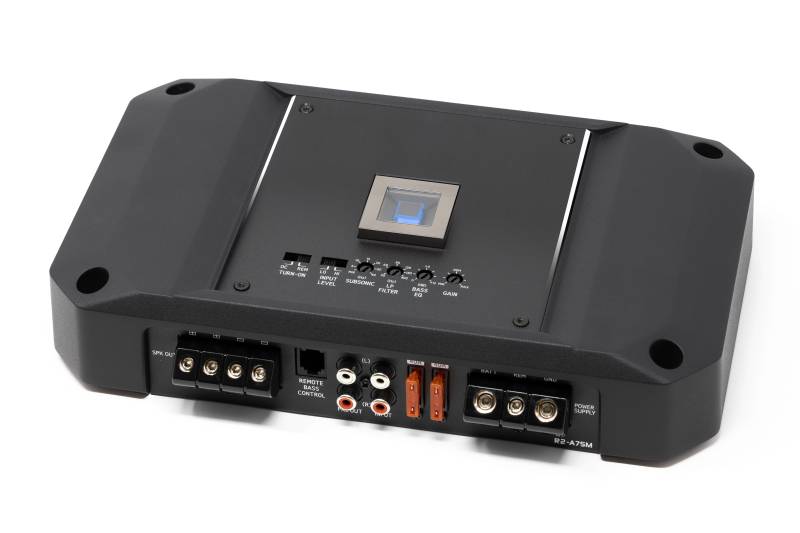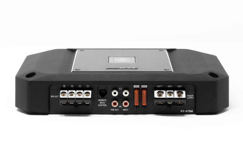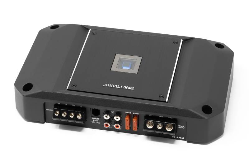 Delivers powerful 750W performance in a sleek, compact design.\nBuilt with Alpine’s cutting-edge Class D Amplifier Circuit, this next-generation R-Series amp offers exceptional sound quality and efficiency, making it the perfect addition to any car audio system.\nThe R2-A75M features a reduced footprint that’s 15% smaller than the previous model (R-A75M), making it easier than ever to install in most vehicle applications while still getting the same powerhouse performance.\nThe R2-A75M features intentional design choices that prioritize convenience and simplicity.\nAll speaker connections are consolidated on one side of the device for easy access, while the amplifier controls have been relocated to the top under a removable plate, allowing for quick adjustments to gain and crossover controls.\nThe amplifier’s chassis also includes integrated mounting “feet” to streamline the installation process.