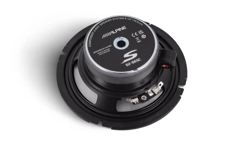 Using “trickle-down” technology, inspired design, and performance cues from the Ultra-High-Resolution AlpineF#1Status system, the Next-Generation Alpine S-Series Speakers are now Hi-Res Audio Certified and able to reproduce up to 40kHz frequency response.\nThis new benchmark in sound quality elevates the Next-Gen S-Series Speakers resulting in a more accurate and natural sound at an entry-level price point.\nCrafted with a unique combination of Poly Propylene, Glass Fiber, and Mica Cone materials, the S2-S65C is designed for lightweight construction, high output, and low distortion, giving you a clean and accurate audio experience.\nAlpine-exclusive High Amplitude Multi-Roll (HAMR) surround technology is integrated into the speaker design which allows for maximum cone movement, delivering powerful and accurate bass notes.\nThe S-Series S2-S65C is compatible with the KTE-S65G Speaker Grille (sold separately). This sleek and stylish grille will not only add a visual upgrade to your speakers but also provide protection against any damage.