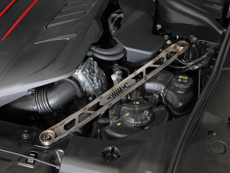 aFe CONTROL fabricated suspension strut braces will stiffen up your chassis and give your engine bay a unique look. Made from 304 stainless steel, the I-beam design is TIG welded to form a lightweight brace that increases the front end rigidity and improving turn-in response. These braces are laser cut from 14-gauge 304 stainless steel and are CNC bent for a perfect fit. This kit includes grade 5 titanium mounting bolts that have an eye-catching burnt-blue anodizing. We include (4) M10 bolts for vehicles that already have factory braces and an additional (2) M8 thru bolts & nuts for the models that did not come with braces from the factory.