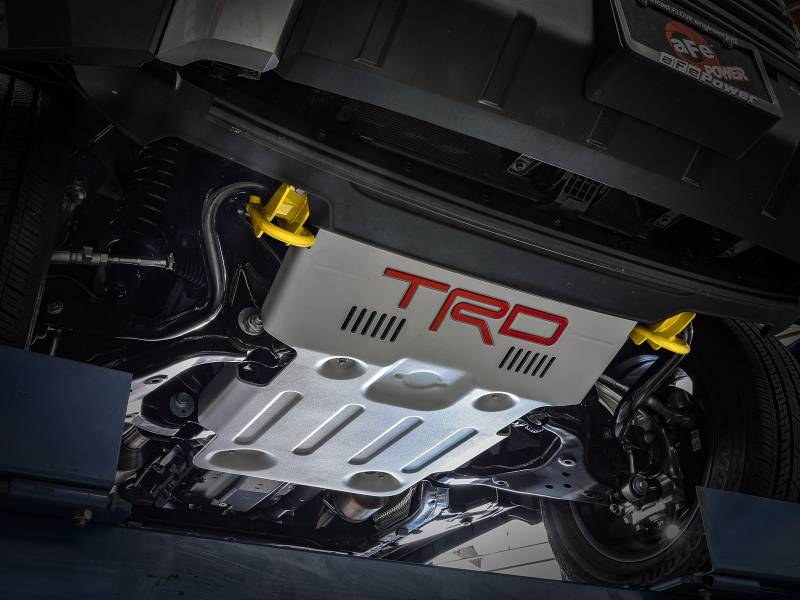 Add dedicated front recovery points to your Toyota Tundra. aFe POWER Tow Loops mount directly to the frame and are much safer than the factory tie-down loop when towing or recovering a stuck vehicle. The 3/4 IN solid steel loop is designed to safely wit'stand and distribute heavy loads allowing access to several recovery attachments for a strong and durable recovery point. Powder-coated yellow so they are easily recognized in the elements during off-road adventures. aFe POWER front tow hooks are constructed from 3/16 IN laser-cut, CNC machined steel brackets, and 3/4 IN solid steel bar. MIG welded for strength and durability. Bolts Directly onto the frame, using the front sway bar mounts with no drilling or modifications. Retains the front sway bar use while clearing the Active Aero front spoiler and factory bumper. (Patent Pending)