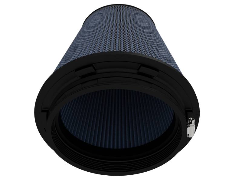 This filter features five layers of pre-oiled cotton gauze media to provide maximum performance. Its progressive layering allows the filter to flow at high levels even when dirty, while its inverted top makes for more filter surface area, resulting in longer service intervals. This media is perfect for street and/or track use. Pro 5R filters are easily recharged with aFe's POWER CLEANER and blue air filter oil. aFe POWER performance air filters use a rounded, evenly spaced pleat design which allows for more usable filter surface area, providing increased flow and greater dust holding capacity. Its surrounded by expanded metal that provides additional protection, preventing filter collapse and direct impact. This aFe POWER performance air filter is constructed with a polyurethane base and top. Unlike other materials that degrade after repeated heat cycles in an engine bay, polyurethane maintains its original molded shape. Utilizing the filter's retention groove, the filter locks into select Magnum FORCE Series housings with zero hardware. This simple design allows for easy filter maintenance and replacement.