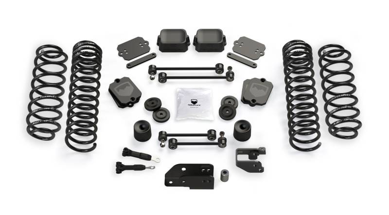 The TeraFlex JL 4dr: 3.5” Coil Spring Base Lift Kit includes just the basic lift components only and doesn’t have the drivability of a full suspension system.
