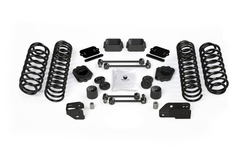 TeraFlex 4.5” Coil Spring Base Lift Kits include just the basic lift components only and do not have the drivability of a full suspension system. Requires Front Control Arm Sport Brackets or adjustable short or long Alpine (IR) Control Arms, and Front and/or Rear HD Forged Adjustable Track Bar(s) to correct suspension geometry.