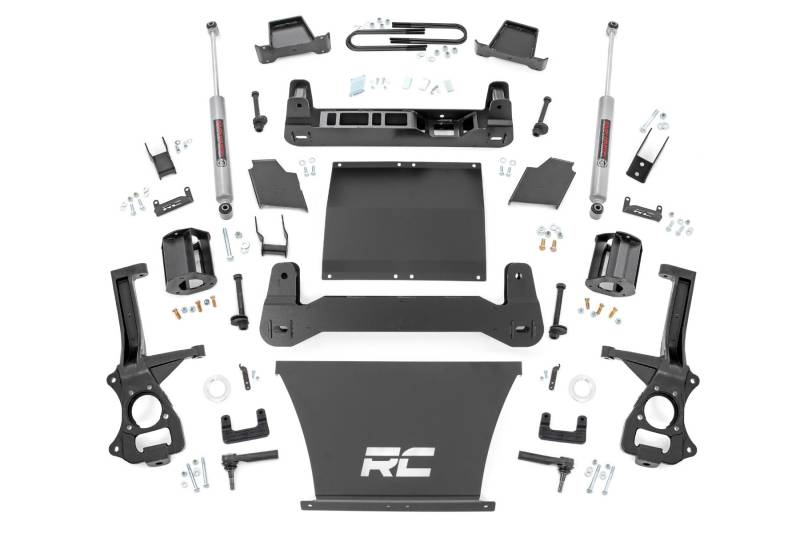 Explore New Heights: Chevy's fourth generation Silverado 1500 features an impressive all-new design that's built from the ground up, with aggressive angles and head-turning stylings that fit in beautifully when transformed with Rough Country's 6-inch Suspension Lift.Innovative Design and Construction: When changing a vehicle's suspension, the key to preserving ride quality is keeping the geometry of all suspension components as close to their factory angles as possible.This suspension kit combines the use of durable steel knuckles, differential brackets, and drop cross members to reduce cv angles and simulate factory angles all while achieving new heights. Featuring a set of upper strut spacers that offer uncompromised strength and rigidity, gaining lift height is no issue. Completing the rear of this suspension kit is a set of rear blocks, shocks, and u-bolts that allow you to retain factory-like geometry. This combined setup provides enough clearance to run 35" tires without additional modifications. We didn't want to limit you to one standard kit. Rough Country's 6-inch kit is configurable with all the shock options that we offer. This allows you to choose which shock series you want! Ranging from our nitrogen-charged N3 shocks to our Vertex reservoir shocks the power to choose is in your hands.Installation: With minor cutting and a strut compressor required to install, an estimated timeframe of 8-10 hours is recommended to complete this full installation. This full kit can be installed at home and can be completed efficiently and quickly!Limited Lifetime Replacement Warranty: Rough Country's 6" Suspension Lift Kit is backed with a limited lifetime replacement warranty towards manufacturer defects. As such, the product is protected from structural and workmanship damage after the date of purchase. With our industry-leading warranty give yourself peace of mind when using Rough Country's Suspension products!