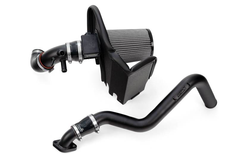 The high-flow performance air filter maximizes the air volume entering the intake system, while the 2.5" aluminum mandrel-bent tube creates a smoother path for the air to travel to the engine. This kit also features a one-piece upper hot side charge pipe which further improves air flow while reducing the number of failure points, ultimately optimizing its output. This optimization is proven with dyno gains of 9.5 horsepower and 9.1 lb-ft. of torque. The custom-engineered heat shield blocks out radiant heat from the engine, allowing the intake to draw in cool air from the front bumper. The kit is installed using HPS high-temperature, high-pressure-resistant 3-ply silicone reducing couplers, 100% stainless steel embossed hose clamps, and high-quality hardware, ensuring durability regardless of performance demand. Requiring only basic hand tools and without the need for any additional modifications, this product is made for a simple bolt-on installation.