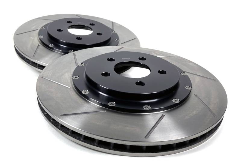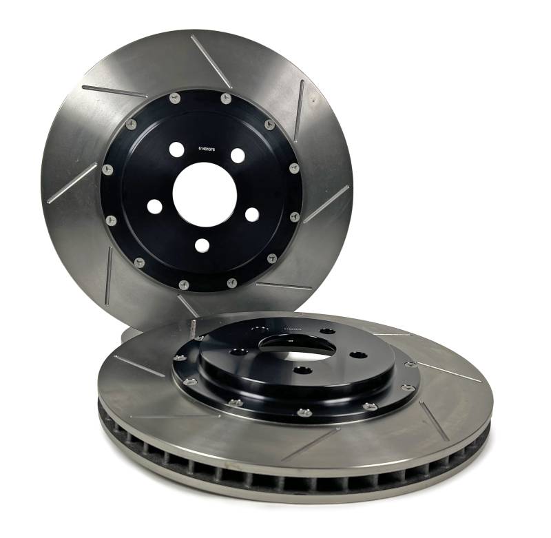 The Baer EradiSpeed+, 2-piece rotor upgrade features a premium, purpose-cast rotor mounted to a black anodized, 6061-T6 aluminum hat with NAS aircraft grade hardware. Eradispeed+ rotors are manufactured from quality iron materials with increased mass in the friction area and have a curved vane design designed to provide greater air flow and improved heat dissipation to outperform the factory units they replace. These Eradispeed+ rotors feature a slot only finish better suited for more extreme conditions and track use. The EradiSpeed+ is a direct-bolt-on system with simple installation and no bleeding of the brakes.