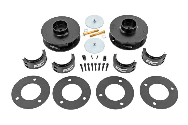 Feel like your Raptor could use a little attitude adjustment? The Rough Country 2.5-inch Lift Kit levels the playing field by evening out your truck's stance so it looks as tough as it performs. Whether you're storming muddy trails, scaling boulders, or cruising pavement with a commanding presence, this kit is your ticket to unstoppable style and performance.Retains Factory Shocks and Struts with a Balanced Stance: No need to trade comfort for clearance. This kit keeps your factory shocks and struts intact, so your truck rides like a dream while handling like a beast. Plus, it levels the front with the rear, giving your Raptor the perfect posture for both style and performance.Increased Ground Clearance: Rise above the rough stuff with added clearance to tackle rocks, ruts, and rugged trails head-on. All while maintaining your Raptor's natural balance and handling so you stay in control.Two-Piece Aluminum Pre-Load Spacer Design: Tough and lightweight, this setup simplifies installation while improving articulation, giving your suspension the flexibility to handle whatever terrain you throw at it.Limited Lifetime Warranty: We stand behind our products. With our Limited Lifetime Warranty, you can hit the trails knowing we've got your back no matter where the road takes you.