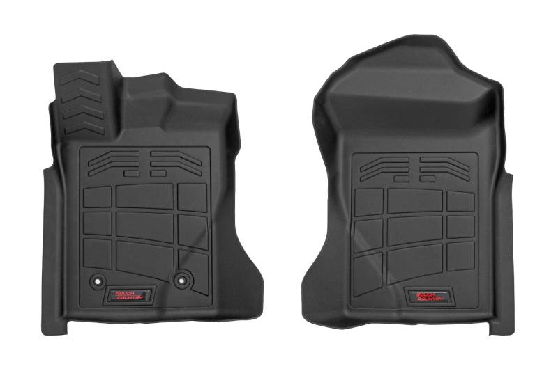 Keeping your ride spotless isn't always easy, especially with the unpredictable weather and accidental spills. Now you can ditch the dirt and keep your ride clean with Rough CountryΓÇÖs Sure-Fit Floor Mats!\ All-Weather Protection: Our Sure-Fit Floor Mats are built to conquer any mess, from snow and mud to sand, salt water, and even that mystery puddle you're too afraid to touch. Spilled coffee? Don't sweat it! These mats feature a raised lip design that traps spills before they can reach your carpet. Plus, the textured surface keeps your feet firmly planted (no matter how messy things get).\ \ Sure-Fit Design: Made from tough Thermoplastic Rubber, these mats can handle anything you throw at them. They're flexible enough to contour perfectly to your Tacoma's floor, but strong enough to withstand even the most extreme temperatures. And the best part? They're custom-designed for your ride, so you get a perfect fit with extra coverage, whether you're rocking bucket or bench seats.\ \ Installation is a Breeze: Simply swap out your old mats and put ours in place. And they're just as easy to remove for cleaning, whether you're hitting them with the hose or giving them a quick vacuum. Made with pride in the USA using high-quality materials, they're built to withstand the test of time. And to show we stand behind our product, we offer a Limited Lifetime Warranty, so you can drive with confidence knowing your investment is protected.\ \ With Rough CountryΓÇÖs Sure Fit Floor Mats you get the perfect combination of style, durability, and peace of mind, knowing your vehicle's floors are protected no matter where the road takes you. Life is messy, but your truck doesn't have to be.