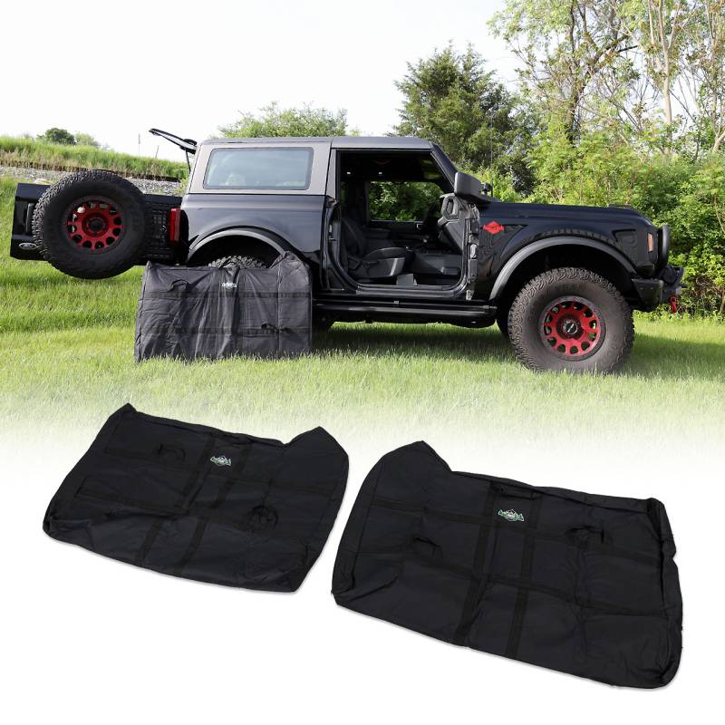 IAG I-Line Door Organizer One of Bronco’s many useful off-road options is the ability to remove the doors, which helps to lighten it up, give it a little more maneuverability and to help with fuel efficiency when you’re out on the trail. If you’re planning on removing your Bronco’s doors, the IAG I-Line Door Organizer bags are an absolute must. These Door Organizers are a fraction of what the OEM version costs, and are a perfect fit for your Bronco’s doors. Constructed of durable canvas material with a soft felt lining to prevent scratching.
