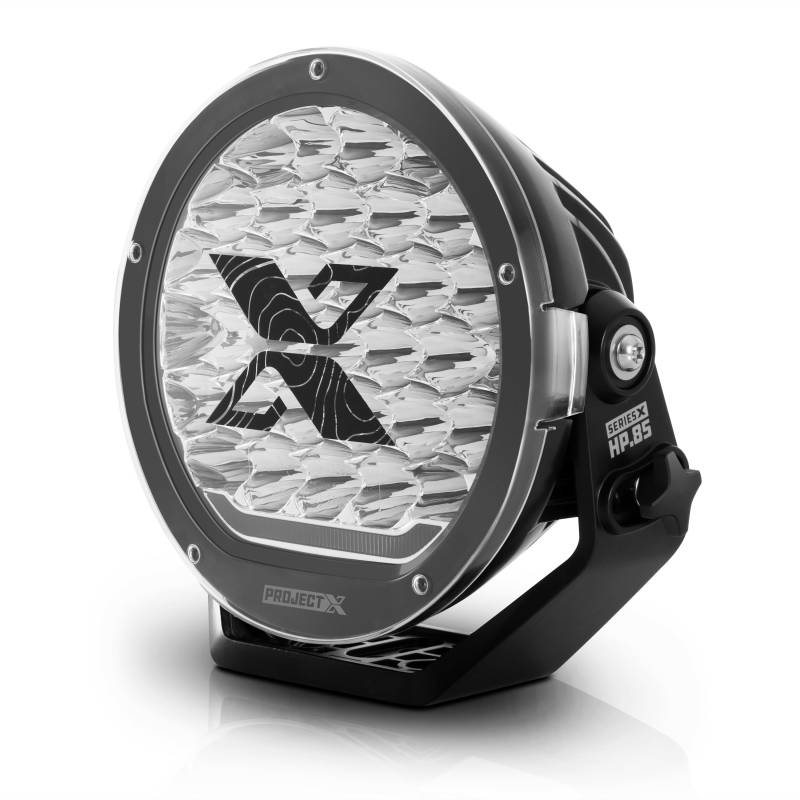 SERIES X HP.85 - HIGH POWER 8.5 INCH LED AUXILIARY LIGHT -COMBO BEAM Connect with the Wild with the Project X - Series X High Power LED auxiliary lights. The Series X LED lights feature best in class performance and is engineered using Osram LED technology to cut through the darkness and light the trail ahead with a powerful combo beam. Featuring an integrated Active Thermal Management System (ATMS), the HP.85 delivers 165 watts of pure white light (5700K) in a broad penetrating beam of light. Unparalleled Performance - 5-Watt High Power Osram-LEDs producing 165W of pure white light (5700K) Best in Class Power - 21,780 raw lumens (15,410 effective) per light Superior Optics - Highly Polished super-efficient aluminum metalized reflector utilizing precisely scalloped parabolas for ultimate control and performance LED Front Position Light - Signature built-in LED light meets ECE requirements for front position light improving daytime driving visibility and safety Customizable Appearance - Customize the look of your Series X HP.85s with your choice of 3 inner trim pieces, including Brocky Blue, Dragon Red and Project X Green.