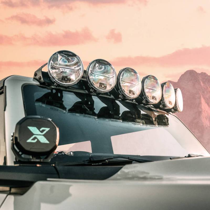 Light up your trail rides with the PROJECT X Bronco Roof Mount lightbar specifically designed for the 2021 and newer Ford Bronco and Bronco Raptor. This expertly engineered mount brings a fusion of practical design and rugged durability to your outdoor adventures.Ease of Installation: The SERIES ONE FF.70 Ro of bracket is a testament to user-friendly design. Its bolt-on structure utilizes the Ford factory "Accessory Ready" ports on your Bronco's roof, ensuring a secure and straightforward installation process.Enhanced Lighting Configuration: Designed to accommodate six PROJECT X SERIES ONE FF.70 7-inch round LED lights, this roof bracket transforms your night driving experience. By combining Spot and Flood beam patterns, you can achieve unparalleled light performance, casting a broad and far-reaching light over the trail ahead. This lighting arrangement is not just about visibility; it's about commanding the dark roads and trails with confidence.Innovative Noise Reduction: Drawing inspiration from the iconic Baja race trucks, the bracket's design marries style with functionality. It strategically positions the lights to minimize wind noise, maintaining minimal cabin noise. The mount's placement below the windshield line is a thoughtful touch, ensuring acoustic comfort without compromising on the bold, off-road aesthetic.Adaptable Vertical Adjustment: The FF.70 lights' vertical adjustability is a standout feature, catering to varying vehicle heights. Whether stock height or has a front or rear rake, the bracket's flexibility allows you to angle the lights precisely, ensuring optimal beam patterns no matter your Broncos height configuration.Durability That Endures: Constructed from high-grade stainless steel, each bracket is laser-cut and welded with precision, reflecting PROJECT X's commitment to quality. The satin black powder coat finish is not just visually striking; it's a shield against the elements, built for years of trail abuse.