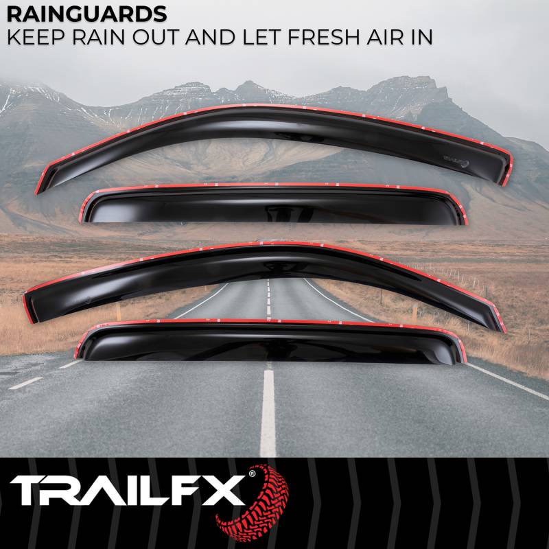 Low Profile Let fresh air in while keeping the weather out. Stylishly designed and simple to install, trailFX window vents are the perfect all weather accessory for any vehicle. All TrailFX window vents feature a limited lifetime warranty. Designed And Manufactured To Match The Contour Of The Window Frame For A Great Fitment Constructed From High-Quality, Durable Acrylic With A Smoke Tint Low Profile Design Decreases Wind Noise And Provides Greater Side Mirror Visibility Keeps Rain Out And Lets Fresh Air In Installs In Minutes To The Inside Of The Window Channel Without Using Tools