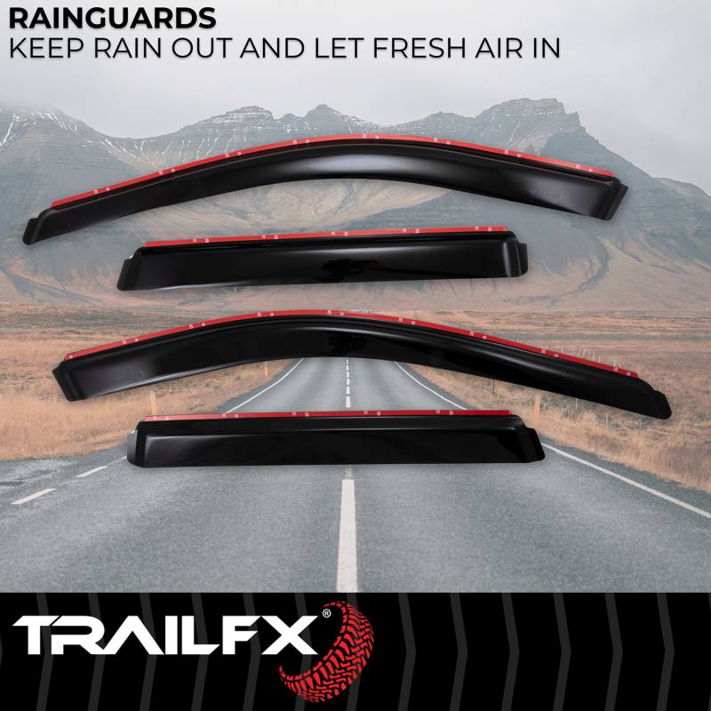 Low Profile Let fresh air in while keeping the weather out. Stylishly designed and simple to install, trailFX window vents are the perfect all weather accessory for any vehicle. All TrailFX window vents feature a limited lifetime warranty. Designed And Manufactured To Match The Contour Of The Window Frame For A Great Fitment Constructed From High-Quality, Durable Acrylic With A Smoke Tint Low Profile Design Decreases Wind Noise And Provides Greater Side Mirror Visibility Keeps Rain Out And Lets Fresh Air In Installs In Minutes To The Inside Of The Window Channel Without Using Tools