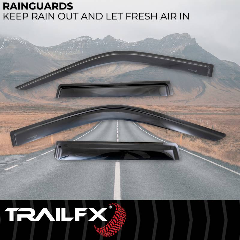 Tape-On Let fresh air in while keeping the weather out. Stylishly designed and simple to install, TrailFX window vents are the perfect all weather accessory for any vehicle. All TrailFX window vents feature a limited lifetime warranty. Designed And Manufactured To Perfectly Match The Contour Of The Window Constructed From High-Quality, Durable Acrylic With A Smoke Tint Low Profile Design Decreases Wind Noise And Provides Greater Side Mirror Visibility Keeps Rain Out And Lets Fresh Air In Installs In Minutes To The Outside Of The Window Channel Without Tools Using Pre-Applied Automotive Grade 3M Tape
