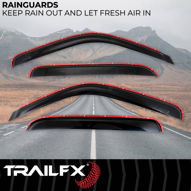 Low Profile Let fresh air in while keeping the weather out. Stylishly designed and simple to install, trailFX window vents are the perfect all weather accessory for any vehicle. All TrailFX window vents feature a limited lifetime warranty. Designed And Manufactured To Match The Contour Of The Window Frame For A Great Fitment Constructed From High-Quality, Durable Acrylic With A Smoke Tint Low Profile Design Decreases Wind Noise And Provides Greater Side Mirror Visibility Keeps Rain Out And Lets Fresh Air In Installs In Minutes To The Inside Of The Window Channel Without Using Tools